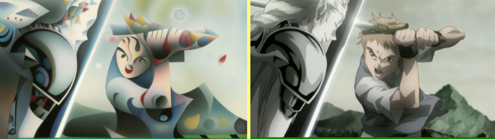 В связи "большим ажиотажем" (для нашего форума) угадывания по нейросети я тоже решил попробовать что-то такое. В этом варианте гадания я привожу измененные нейросетью скриншоты и указываю аниме из которых они сделаны. Естественно в разном порядке. Может это будет слишком просто - не могу пока оценить. Ведь я вижу изначальные скриншоты. Может наоборот будет сложно. В этом случае я сначала добавлю оригиналы, а потом уже в крайнем случае - дам правильный порядок. Я не буду отвечать сразу по конкретному рисунку правильно или нет, т.к. это приведет к угадыванию по методу отбора. А список небольшой. Кто угадает может попробовать загадать. Если никто не захочет - я продолжу сам. Bleach, Claymore, Fate Stay Night, Rurouni Kenshin, Witchblade Рисунки изменены в стиле Кандинский. 1 2 3 4 5 5