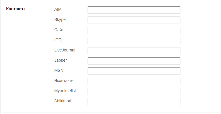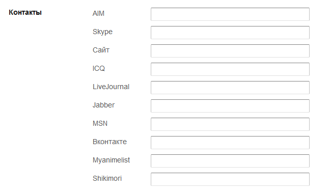 Уберите устаревшие поля, такие как AIM, MSN и добавьте актуальные - Telegram, Discord. И "ВКонтакте" исправьте, чтоб было ВКонтакте, а не Вконтакте, потому что это правильное официальное написание
