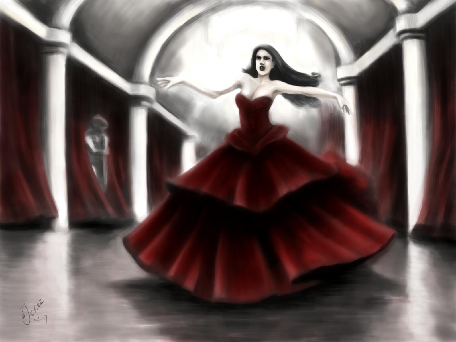 Готишная девушка, однако, вышла:) И, действительно, очень тревожная. Работа красивая и фон задний проработан.А отражение на полу просто прелесть :) Все в едином духе выдержанно. А ты еще прорабатывать мелкие детали будешь? Левая рука очень хорошо проработанна, а правая немножко теряется,хотя на нее первым делом смотришь. И складочки на платье хочецца сделать более осязаемыми.