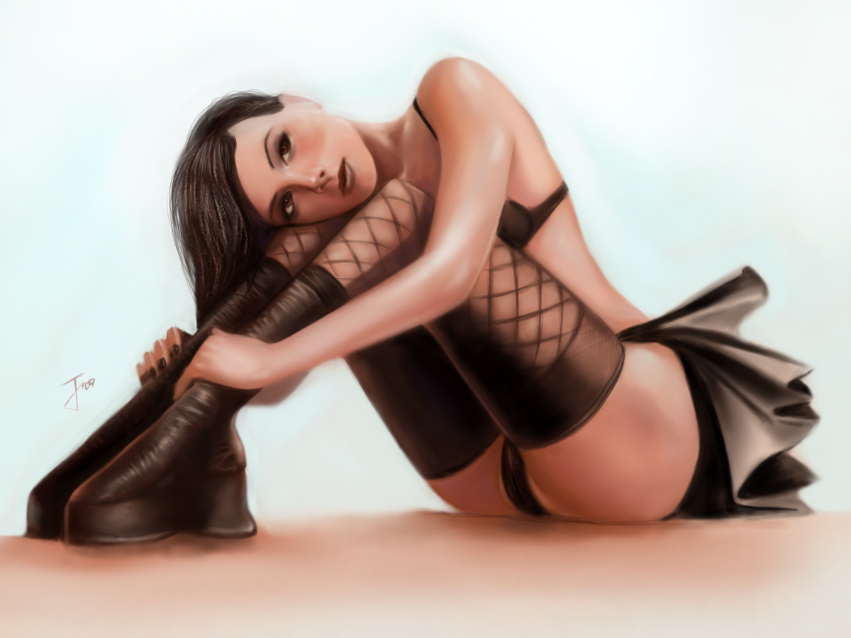 вах, все круто :) , ток немного смущает левый от нас ботинок: даже если учитывать, что ее правая нога чуть дальше(хотя, в таком случае ей стало-бы слегка неудобно стоять), так быть походу не должно, если ток эт не задумка автора (обуть готессу в ортопедическую обувь XD, гомен).