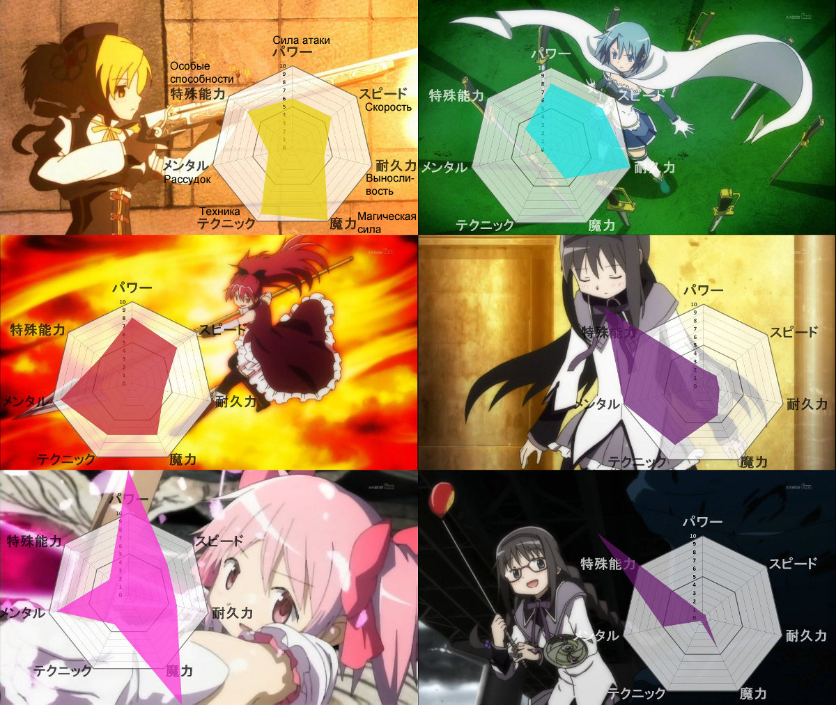 Изначально Мадока показана махосёдзей средней руки, не сильнее Мами, а в одном из последних циклов она уже способна уничтожить Вальпургис единым махом.
